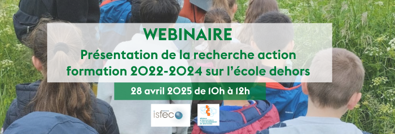 Présentation de la recherche action collaborative 2022-2024 sur l’école dehors menée par des enseignants, Aurélie Zwang, chercheuse en Sciences de l’éducation et 3 formateurs de l’ISFEC. Rendez-vous lundi 28 avril 2025 de 10h à […]